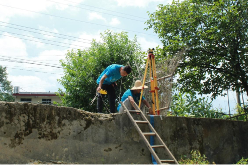 队员们在村内进行定点测量