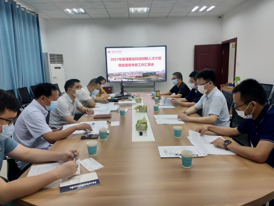 8月4日上午,受科技厅委托,学校组织专家组对易兵教授主持的新工科人才科技创新创业能力培养基地项目和万泉研究员申报的湖湘高层次人才聚集工程项目进行现场考察,汇报会由副校长魏克湘主持,校长易兵、专家组成员、宣传部、人事处、科技处、创新创业学院相关部门负责人和项目组成员参加会议。