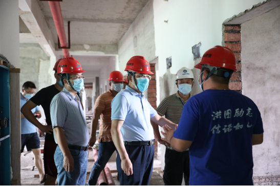 8月5日上午,党委书记陈岳堂、副校长陈赤平深入主校区(北)学生宿舍维修项目、在建的滨江学生宿舍10-11栋项目,督查各个项目工程进度情况,并进行现场办公。