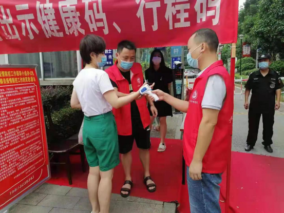 “大爷,请出示你的健康码和行程码,请正确佩戴好口罩……”在阳光社区湘潭市电业局电力住宅小区门口,李佳和社区工作人员一起为阳光社区居民筑牢了一道安全防线。作为建筑工程学院学生办公室主任,李佳暑期还管理着学院60多位留校考研学生,工作任务繁重。“虽然我的孩子还很小,需要陪伴,我家里还有一位住院的老母亲,但‘疫情就是命令’。作为一名高校党员教师,我要顾全大局,用行动证明共产党员经得住千锤百炼,担得起人民群众的主心骨。”李佳说。