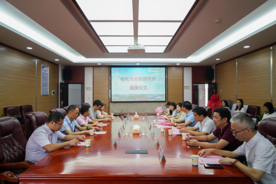 随后,陈岳堂和马伟共同为电机与控制研究所揭牌,并为企业颁发捐赠证书。双方就人才培养、科学研究、校企合作等方面进行了深入的沟通与交流。