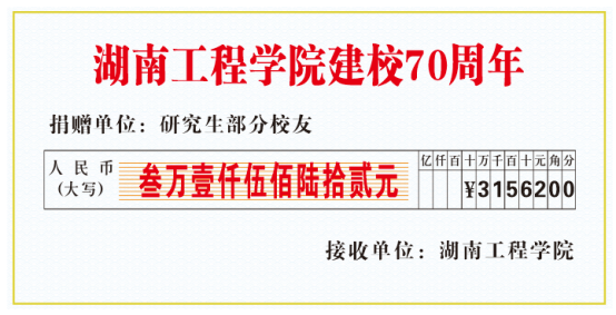 金秋十月,学校将迎来建校七十周年,怀着对母校浓浓的情谊,学校研究生校友自发组织、倡议向母校捐赠,助力母校发展,表达对母校的感恩和祝福。