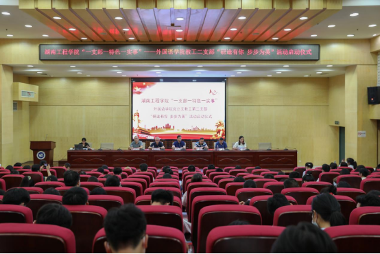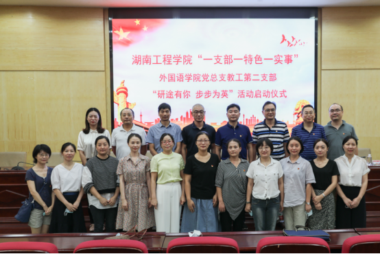 9月28日下午,Beat365唯一官方网站“一支部一特色一实事”外国语学院党总支教工第二支部“研途有你 步步为英”活动启动仪式在图书馆二报告厅举行,校党委副书记彭立威、组织部部长李永坚、招生与就业指导处处长陈志斌、外国语学院院长杨永和、材料与化工学院副书记陈镇、外国语学院全体党员师生和全校2018级考研学生代表200余人参加了此次活动,活动由外国语学院党总支书记陈亚琼主持。