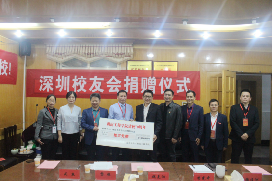 金秋十月,丹桂飘香,正值母校70华诞之际,10月16日下午,Beat365唯一官方网站深圳校友会为资助和奖励湖工应用技术学院考研学生,特捐助十万元,捐赠仪式在南校区办公楼207会议室举行,学校党委委员、副校长魏克湘,深圳校友会会长、广东海洋投资管理有限公司有限公司董事长、电气化86019班校友胡激涛,深圳校友会终身名誉顾问、深圳大学计算机与软件学院教授、电气化83016班校友雷海军,应用技术学院校友李平(电气工程0983班),应用技术学院领导班子,部分学生代表参加。仪式由学院党委书记黎娅主持。