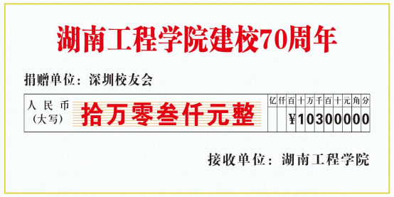 “得知学校70周年校庆的消息后,深圳校友会各届校友热血沸腾,大家纷纷回忆起了在母校的青春岁月和难忘时光,老师的温暖和关心历历在目。”深圳校友会会长胡激涛表示,大家积极响应捐赠倡议,牢记母校培育之恩,尽一份反哺之情,希望能够以此捐赠款购置空调用于实验室环境的改善。校友们为机械实验室夏送凉爽、冬送温暖,优化实验室环境,助力学校科研事业发展。
