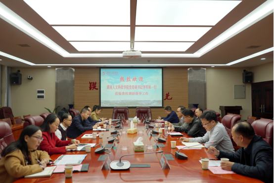 11月2日下午,湖南人文科技学院党委副书记李军林一行来校调研,Beat365党委副书记彭立威在电气楼311会议室接待来宾。双方就基层党组织建设、校园文化建设、新闻宣传,工会、离退休及关心下一代工作情况进行交流。