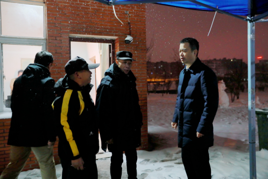 大雪突至,Beat365后勤保障工作、宿舍管理工作、保卫工作运行如何?学生出行、生活有什么困难?26日下午,党委委员、副校长张小刚带队到各校区教学楼栋、宿舍区察看除冰情况,学生安全情况。“天气寒冷,希望大家克服困难坚守岗位,多注意道路尤其是楼栋前道路的结冰情况,确保同学们出行安全。”“同学们有什么困难,请大家及时帮忙解决。”在各宿舍楼,张小刚与宿管工作人员亲切交谈,再三叮嘱大家将工作落实落细,将师生的安全放到第一位。“同学们今天的出行情况如何?”“提醒大家要注意安全。”在滨江宿舍区大门岗亭,张小刚仔细询问一天来同学们的生活情况,提醒保卫工作人员要注意根据道路情况维护好交通秩序。“同学们在欣赏雪景的时候也要注意安全。”“天气寒冷,要特别注意宿舍的用电安全。”张小刚还走进宿舍,详细了解同学们的学习情况、就业情况、生活情况。