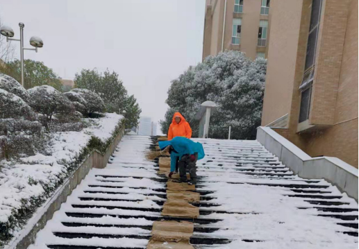 “全力投入到学校的除冰行动,确保师生出行安全!”学校学生工作处、保卫处、后勤基建处相关负责人表示,除冰行动从26日早上一直持续到深夜,27日将继续进行,各部门将责任扛在肩上,确保校园安全,为师生营造良好的工作、学习、生活环境。