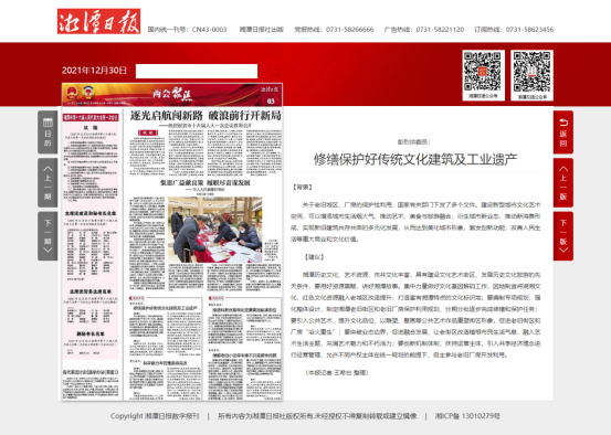 湘潭日报报道彭烈洪委员“修缮保护好传统文化建筑及工业遗产”议案