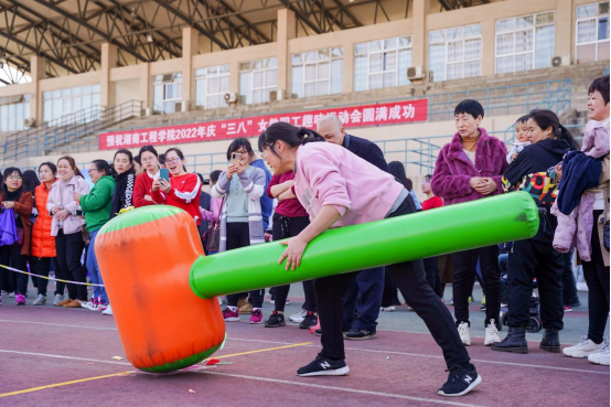 活动内容丰富,包含致全校女教职工的一封信、送鲜花、观影、普法宣传、“情系女职工 法在你身边”知识竞赛、心理健康讲座,表彰先进、趣味运动会等。活动形式多样,采取线上、线下,校内、校外相结合。尤其是妇女节当天举行的趣味运动会,令人印象深刻。校党委书记陈岳堂、副校长向前为运动员加油助威。
