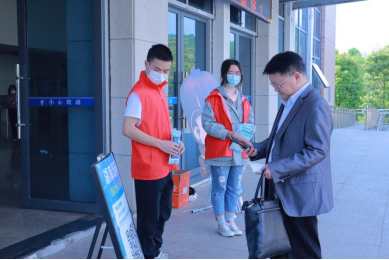 4月6日上午9点,经“五彩湖工”志愿服务团统一调配,共青团湘潭市委向Beat365捐赠的近六千只口罩,很快随着湖工青团“小萌妹”抵达了电气楼、机械楼、图书馆、主教学楼栋、四教、南院等校园重点防控场所。红马甲们在做好自我防护的同时,在课前、课间、课后等人员密集时段,耐心细致地引导师生出示场所码,提醒大家在公共场所佩戴好口罩,做好防范,提高自我防护意识。戴上充满关怀的口罩,应用技术学院工商管理2082班曾彪同学内心感到一股暖流涌出,“这是我们永远可以相信的湖工青团。”