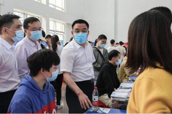校党委书记陈岳堂、副校长陈赤平一行到现场视察,与企业负责人亲切交谈,表达了对各用人单位的欢迎,同时希望企业能够吸纳学校优秀的毕业生进入企业工作,校企共同助力毕业生高质量就业。党委副书记、校长易兵在招聘会举行之前来现场指导部署招聘工作,要求工作人员做到清楚基本数据、清楚就业状况、清楚就业意向,实现求职精准指导、就业信息精准推送、就业问题精准帮扶。