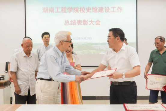 “参与建设校史馆,凝聚着我们对湖工的一份情、一份爱,一份感激和一份赤诚,我们由衷地期望学校继承弘扬校史厚重工程文化,再接再厉、创造辉煌,为校史馆增添新亮点,谱写新篇章。”获奖代表张亮峰教授发表深情感言,从探访学校第一个校址,找寻开创初期华光校长的照片,加工修复整理图片两万余张到撰写《湖工赋》等,他细数了校史馆自筹建以来的累累硕果,对老同志们在建馆过程中所表现出的严谨、拼搏和担当的精神表达了崇高敬意,对学校各级领导给予校史馆建设工作的关心、支持和指导表示由衷感激。