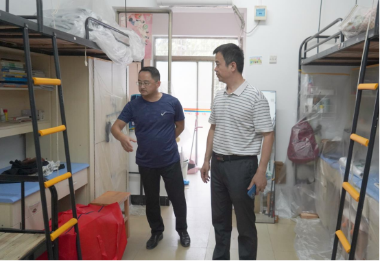 张小刚前往各个校区,实地查看学生宿舍修缮、维护、家具改造等情况,叮嘱施工人员要仔细排查消除各类风险隐患,收尾环节全面查漏补缺、做实做细;施工队和宿管人员要做好宿舍改造后全面的清洁,为老生返校及新生开学创造一个整洁、舒适、温馨的住宿环境。