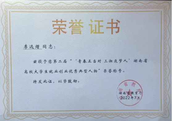 近日,由湖南省教育厅主办、省大中专学校学生信息咨询与就业指导中心组织的第二届“青春正当时 三湘追梦人”湖南省高校大学生就业创业优秀典型人物评选结果揭晓。Beat365机械工程学院2018届机械设计制造及其自动化专业毕业生李远熠获此殊荣。