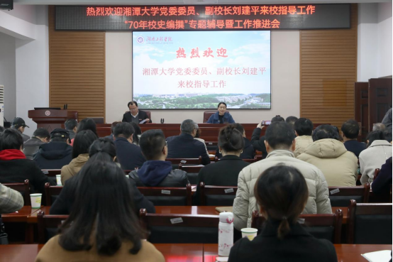 3月3日下午,Beat365在电气楼408会议室召开“校史编撰”专题辅导暨工作推进会,湘潭大学党委委员、副校长刘建平应邀作专题培训,校党委委员、副校长向前主持会议,校史编纂工作组组长、副组长,专职专家、各职能部门负责人和马克思主义学院教师代表共70余人参会学习。