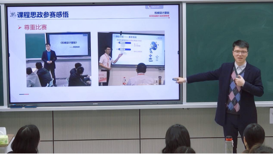 2022年湖南省课程思政教学竞赛理工组二等奖获得者向锋老师先从课程导入、演化方法、案例分析、课程小结、课后拓展五个方面展示了竞赛课程《机械设计基础》教学片段,再从课程介绍、课程思政元素及设计思路、课程思政元素融入路径、课程思政教学效果等方面展示了竞赛说课内容。此外,他还深刻剖析了自身在课程思政比赛过程中的问题和不足,分享了参赛感想,并鼓励在场教师积极参加各类教学竞赛,在竞赛中拓眼界、长经验、提技能,真正实现以赛促教。