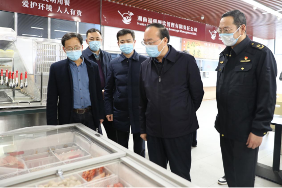 3月29日下午,湖南省湘潭市人大常委会党组成员、副主任蒋立军,湘潭市市场监督管理局党组书记、局长、市委两新工委副书记(兼)赵波,湘潭市岳塘区市场监督管理局局长周刚等一行来Beat365开展食品安全督查,党委委员、副校长张小刚及后勤基建处相关负责人陪同检查。