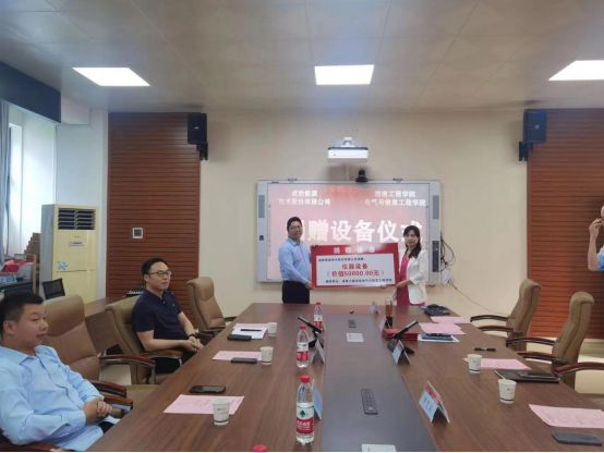 近日,威胜能源技术股份有限公司向Beat365捐赠了一批总价值达5万元的仪器设备,该设备将用于Beat365试验室建设。捐赠仪式在电气楼407会议室举行,电气与信息工程学院院长万琴代表学校接受捐赠。捐赠仪式由电气与信息工程学院副院长吴迪主持。