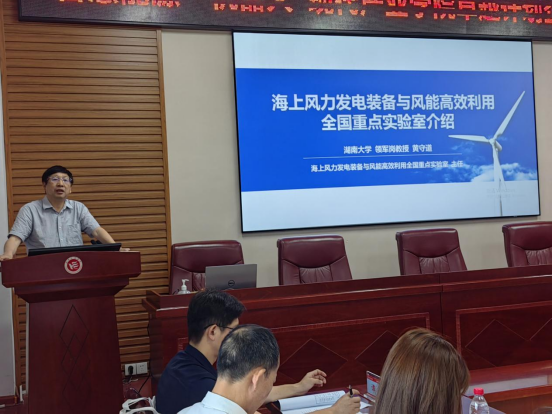 湖南大学岳麓学者、海上风力发电装备与风能高效利用全国重点实验室主任黄守道教授作《海上风力发电装备与风能高效利用全国重点实验室介绍》主题报告。针对我国海上风力发电技术的战略需求及发展现状,报告介绍了海上风力发电装备与风能高效利用全国重点实验室重组意义及定位、重点任务与发展目标、建设基础与历史贡献、团队建设以及未来主要研究方向。