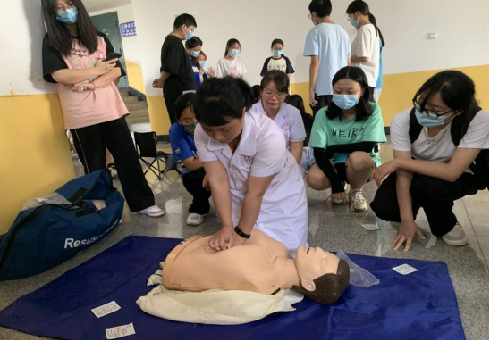 培训现场,湘潭市红十字协会副会长彭晗辉采用理论知识讲解和实际操作相结合,对心肺复苏等急救知识等进行了详细讲解和演示。校医疗科工作人员和志愿者指导现场学生进行实操,以确保其动作的规范和标准。现场150余名学生参加培训考核,获得救护员培训证书。