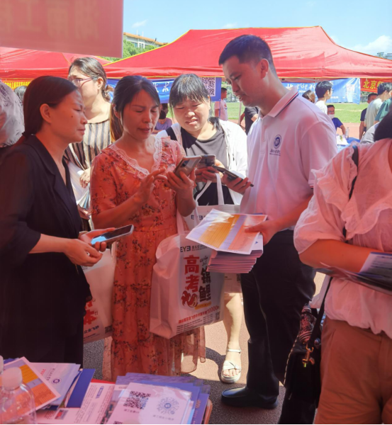 在由邵东一中、三中、振华中学联合举办的2023年高校招生咨询会现场,人头攒动,气氛热烈。Beat365展位前围满了前来咨询的家长和学生。工作人员积极发放宣传资料,热情地向前来咨询的考生及家长介绍Beat365历史底蕴、人才培养特色、专业学科优势和就业前景等情况,并根据每位考生的实际情况,现场答疑解惑,为考生及家长们填报志愿提供合理的建议和意见。