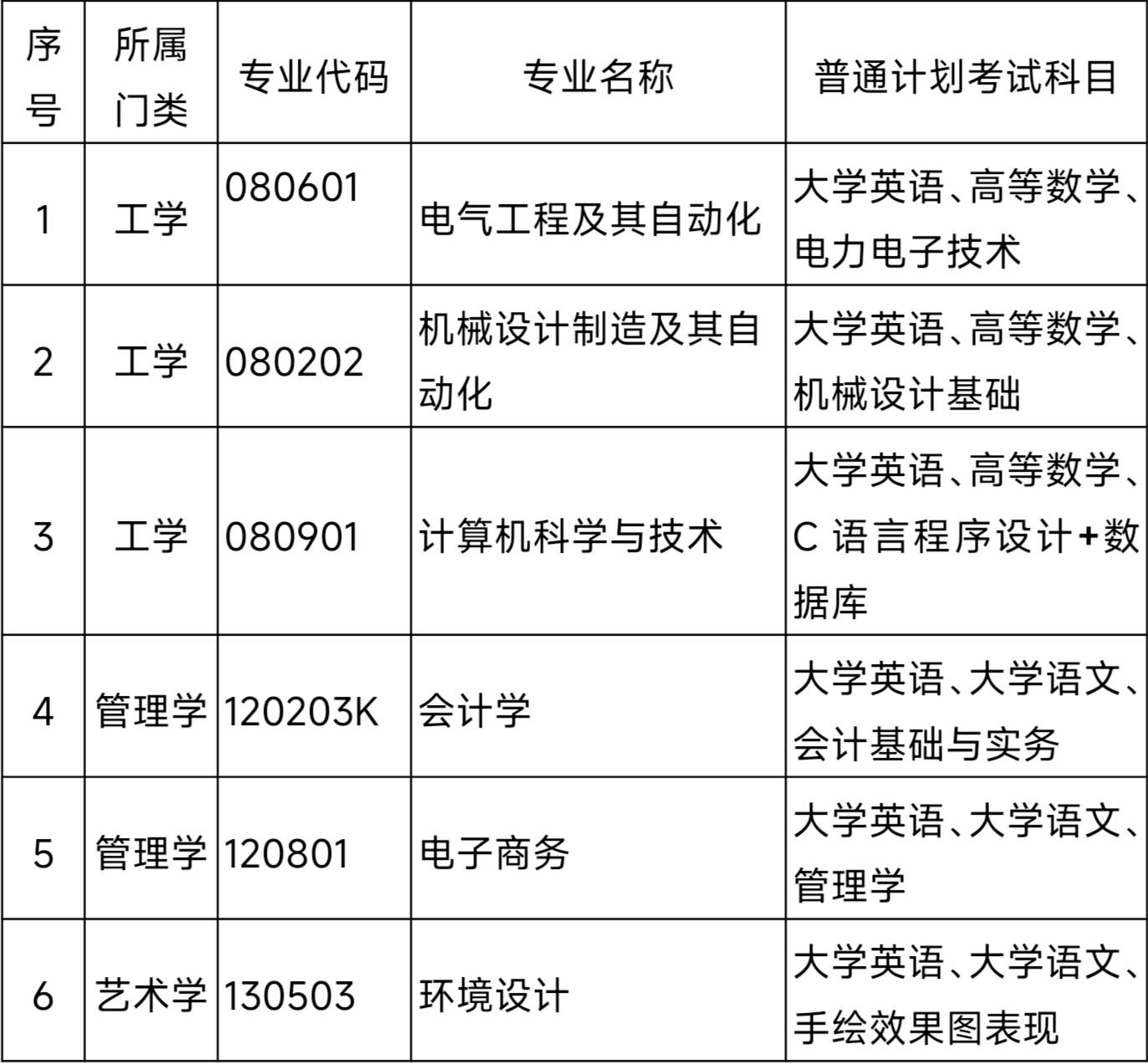 (一)考试科目和形式。具体科目见表1,其中大学语文、高等数学和大学英语为统考公共科目,由湖南省教育考试院统一命题;其他科目为专业综合科目,由学校自行命题。每门统考公共科目满分150分,专业综合科目满分200分,总分满分500分。《大学英语》考试时长90分钟,《大学语文》和《高等数学》考试时长各120分钟,专业综合科目考试时长150分钟。