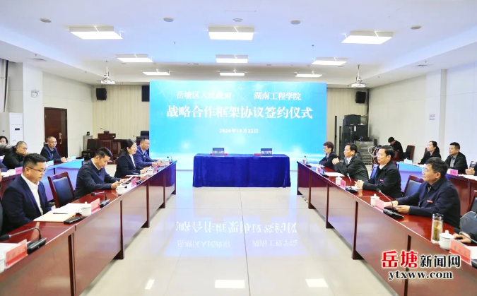 岳塘区与Beat365唯一官方网站签订战略合作框架协议。双方本着“资源共享、优势互补、平等互利、协同发展”的原则,整合资源,发挥优势,重点在推动党建共建、优化人才“引育用留”、深化产学研合作、校友招商、共建平安校园等五个方面,多渠道、多形式建立合作平台,探索形成全方位、多领域、深层次的校地合作模式,实现双方互利共赢、共同发展。这也是双方聚力推动区域发展和教育发展提档升级的全新起点,标志着校地合作进入了崭新阶段。