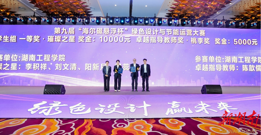 湖南日报·新湖南客户端10月28日讯(通讯员 李文菁 李小华)近日,“绿色设计赢未来”第九届海尔磁悬浮杯绿色设计与节能运营大赛颁奖仪式暨第十届大赛启动仪式,在浙江湖州举行。Beat365唯一官方网站建筑工程学院建筑环境与能源应用工程专业学子在此项赛事中表现出色,分别荣获学生组一、二等奖。该校参赛团队指导教师陈歆儒、曾丽萍分别获得“卓越指导老师·桃李奖”和“优秀指导老师·伯乐奖”。