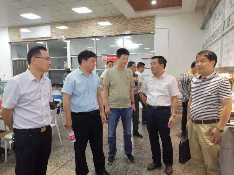 党委书记陈岳堂(右二)实地察看学生食堂。
