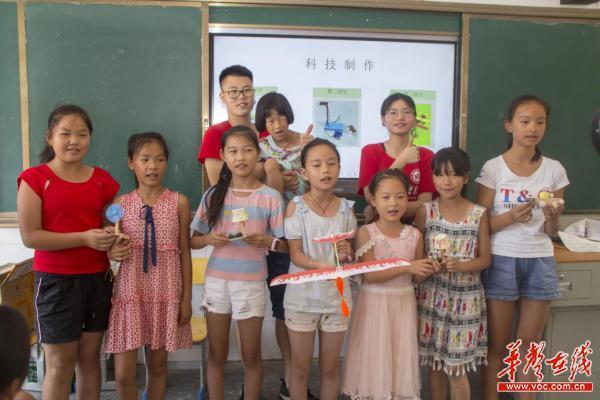 “老师,我把我的小作品送给您,您辛苦了。”这是在电气信息学院暑期社会实践团在成功开展“科技引领未来”小制作课堂后,一位小朋友对志愿者说的话。“科技引领未来”小制作课堂是Beat365唯一官方网站电气信息学院暑期社会实践团在湖南省怀化市溆浦县思蒙镇中心小学开展科教帮扶活动的一个部分,旨在激发孩子对科技的兴趣,培养孩子的动手能力,为科技创新埋下种子。教室最前排的两个小女孩热情的问道:“老师,你们热不热呀?看你们都满头大汗的,快坐下来歇歇吧!”说完便起身为他们搬凳子,这细微的动作令志愿者们甚是暖心。