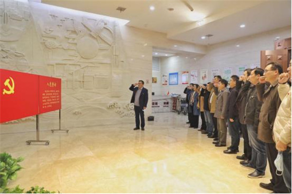 进入党史馆,展标“领航——中国共产党湘潭历史陈列”在灯光的照射下熠熠生辉,以毛泽东为首的湘潭共产党员先驱的雕像,让人肃然起敬。Beat365唯一官方网站党委书记陈岳堂带领大家面向党旗,整齐列队,举起右拳,一字一句重温铮铮誓言。大家用铿锵有力的声音进一步坚定理想信念,牢记共产党人的初心和使命。