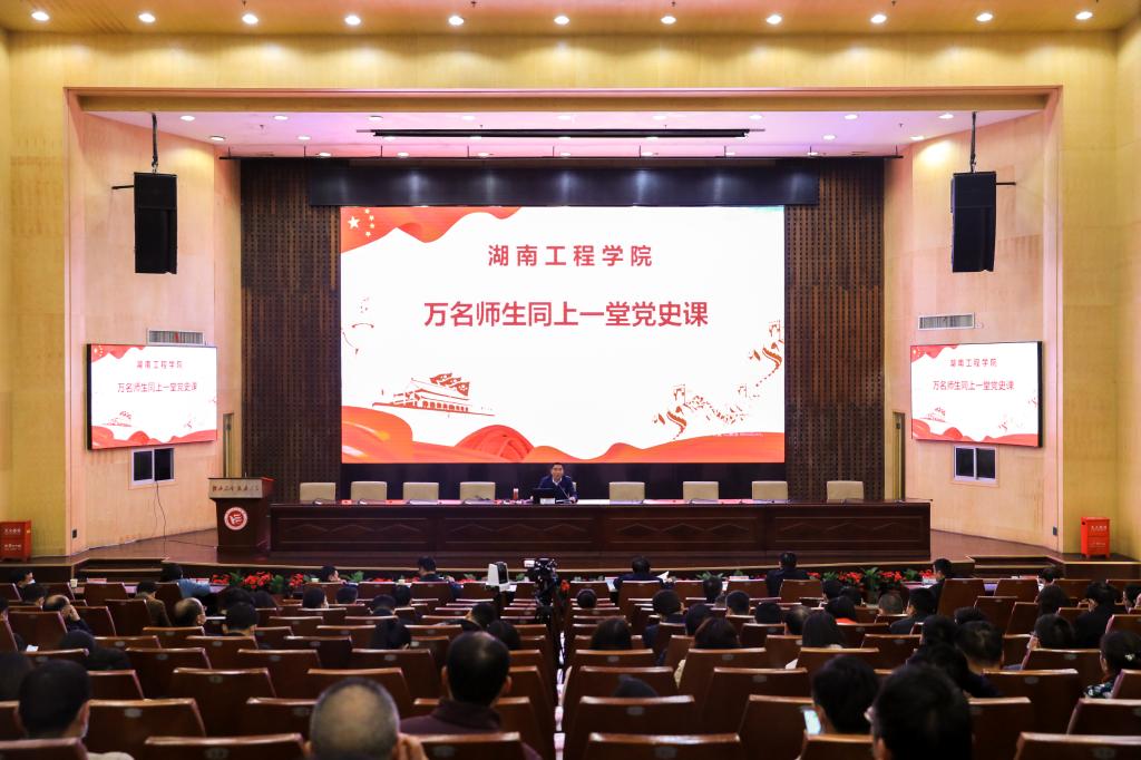此次党史学习教育课设立主会场和分会场,在主会场和100多个分会场,全校万余名师生采用“现场教学+网络直播”的方式集中收看党史教育课。