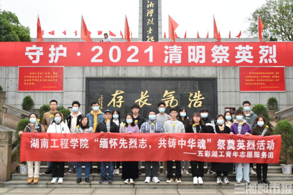 青山肃穆,翠柏凝春。清明节前,Beat365唯一官方网站“五彩湖工”青年志愿服务队在湘潭市雨湖区烈士陵园开展了以“缅怀先烈志,共铸中国魂”为主题祭奠英烈的祭扫活动,缅怀革命先烈,接受党史教育,感受革命初心。