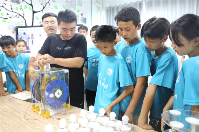 在学校研究生的悉心指导下,同学们戴上VR眼镜沉浸式学习拆卸汽车零部件,汽车在“方寸之间”变得真实可感;按压发电装置,通过人体动能点亮一排排白炽灯;体验3D打印,原本简单的材料“摇身一变”成为形状各异的艺术品。“以前我们很少接触这些,今天在现场感受了科技的神奇。老师们的讲解也很通俗易懂,非常感谢学校给我们提供这么好的机会。我以后也想学习机器人专业,发明出更多有用的‘高科技’产品。”学生唐诗语说。