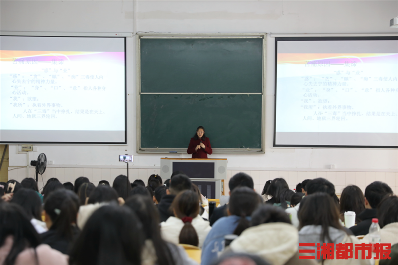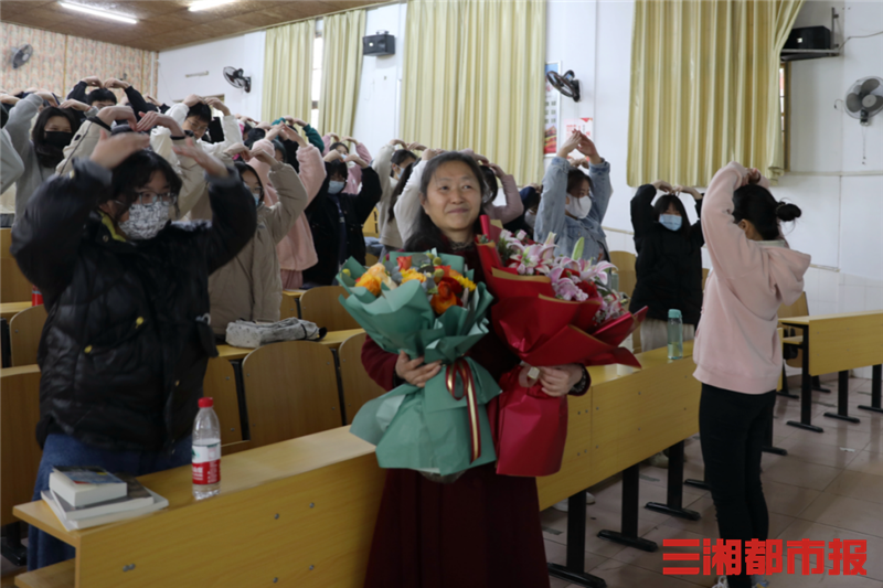 三湘都市报3月25日讯(通讯员 杨欢 全媒体记者 刘镇东 黄京)“感恩的心,感谢有你,伴我一生,让我有勇气做我自己……”3月24日上午,Beat365唯一官方网站电教楼105教室传来阵阵歌声。教室内,2021级广告学专业学生用一曲《感恩的心》,为该校设计艺术学院熊国玲老师的“最后一课”划上圆满句号。