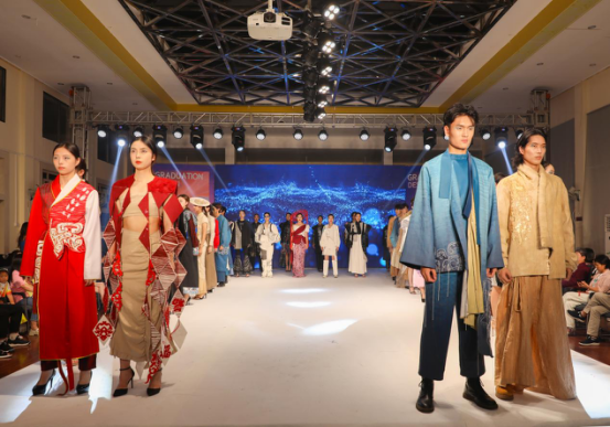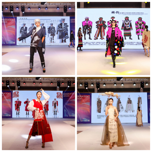 本次毕业汇报演出展示了多个系列的服装服饰,包含苗之韵、向阳而生、云上花瑶、苗尚新生、终朝采蓝、女性·力量、深海奇缘、静聆敦煌等篇章。服装从水墨刺绣的古色古香、自然万物的和谐共生、传统现代的巧妙融合、民族元素的独特韵味,再到五颜六色的视觉冲击……每一种风格都吸引着观众们的眼球,让大家目不暇接,从中感受到新时代中国青年的热血与朝气。