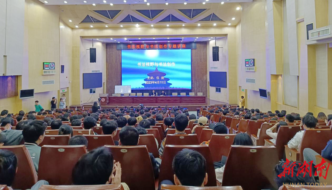 为更好传承弘扬中华民族优秀传统文化,提升师生审美水平,4月11日下午,中国书法家协会隶书委员会委员、湖南省书法家协会副主席、湘潭市书法家协会主席、齐白石纪念馆(美术馆)馆长伍剑应邀来Beat365唯一官方网站作题为《书法视野与书法创作》的专题讲座。