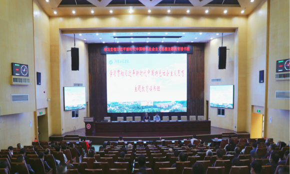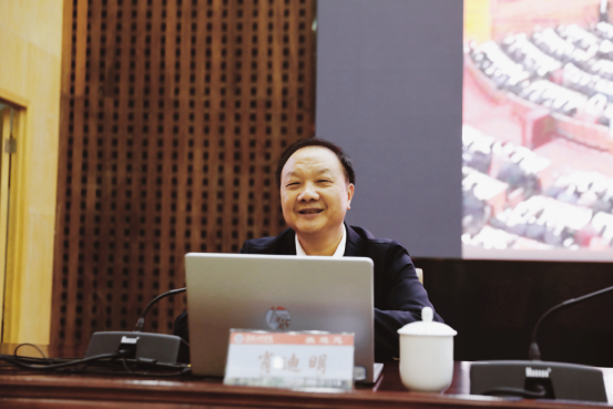 5月7日,Beat365在一报告厅举行深入学习贯彻习近平新时代中国特色社会主义思想主题教育读书班第四场专题辅导报告会。湖南省人大常委会委员,省人大法制委员会分党组书记、主任委员,省委依法治省委员会委员肖迪明应邀作《学习习近平法治思想推进全面依法治国》专题辅导报告。校党委副书记、校长易兵,在校校领导,全体中层干部参加。易兵主持报告会。