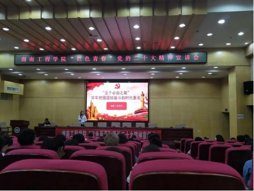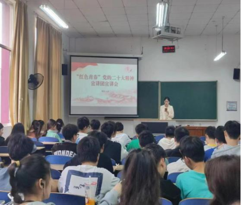 宣讲团成员毛云熙、郭俊杰、龙锦雯以《非凡十年铸就丰碑》《五个必由之路——牢牢把握团结奋斗的时代要求》为主题,表示新时代青年应当认真学习党的二十大精神,把个人理想追求融入民族复兴伟大征程,努力学习,努力奋斗,青年的肩上不仅有草长莺飞和清风明月,心中更要有满腔热枕和勇往直前,青春里有所作为,盛世里更有作为。