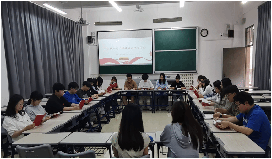 在学习沙龙活动中,学生党支部、读书社各小组通过集中学习、理论宣讲、交流研讨的形式对《中国共产党纪律处分条例》进行学习,要求同学们增强纪律观念,做一名合格的新时代大学生。