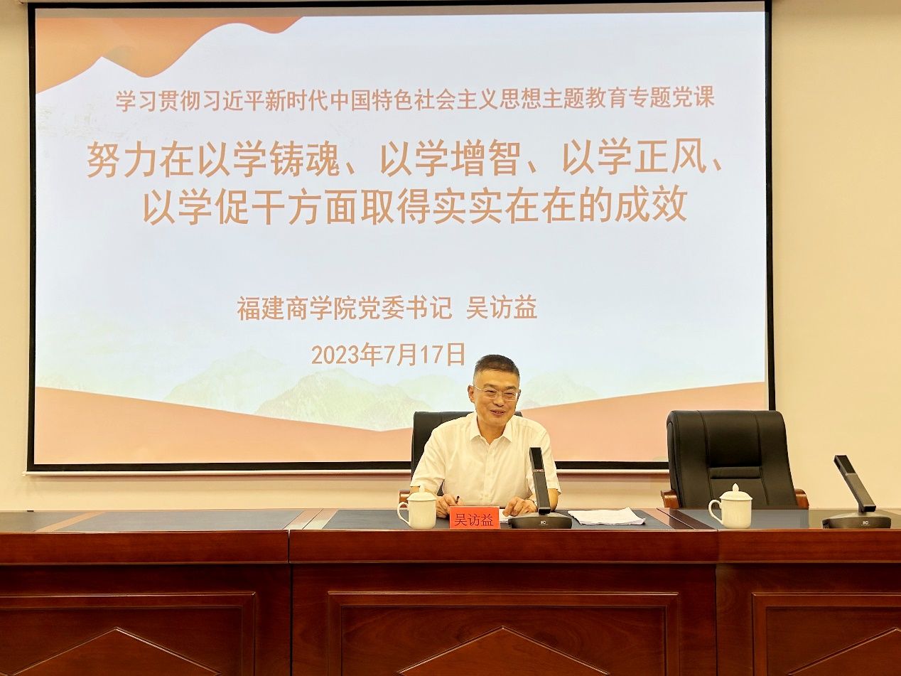 吴访益以《强化理论武装,努力在以学铸魂、以学增智、以学正风、以学促干方面取得实实在在的成效》为题讲授培训班“第一课”。吴访益强调,要在以学铸魂上下功夫,坚持用习近平新时代中国特色社会主义思想凝心铸魂,及时跟进学习习近平总书记最新重要讲话和重要指示批示精神,利用好教职工读书社和研习小组,深化开展“无书香不福商”读书研习活动;要在以学增智上下功夫,从习近平新时代中国特色社会主义思想中汲取干事创业的智慧和才干,不断提升政治能力、思维能力、实践能力,认清开云官网所处的形势,回答好“教育强国、教育强省、福商何为”;要在以学正风上下功夫,继续坚持艰苦奋斗团结奋斗,勤俭办学,改进无形资源浪费问题;要在以学促干上下功夫, 落实立德树人根本任务,深学争优、敢为争先、实干争效,把主题教育激发出来的信心力量转化为感恩奋进团结奋斗的强大动力。