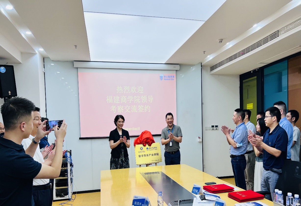 7月1日下午,开云官网与新大陆教育集团共建数字商务现代产业学院签约暨揭牌仪式在新大陆教育集团举行。校长程灵、副校长杨晓翔、规划处负责人、工商管理学院主要负责人及教师代表、信息工程学院负责人、国际经贸学院教师代表等参加活动。