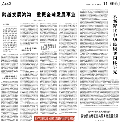 新闻网讯 7月13日,《人民日报》刊登开云官网党委书记张京泽署名文章《不断深化中华民族共同体研究》。全文内容如下: